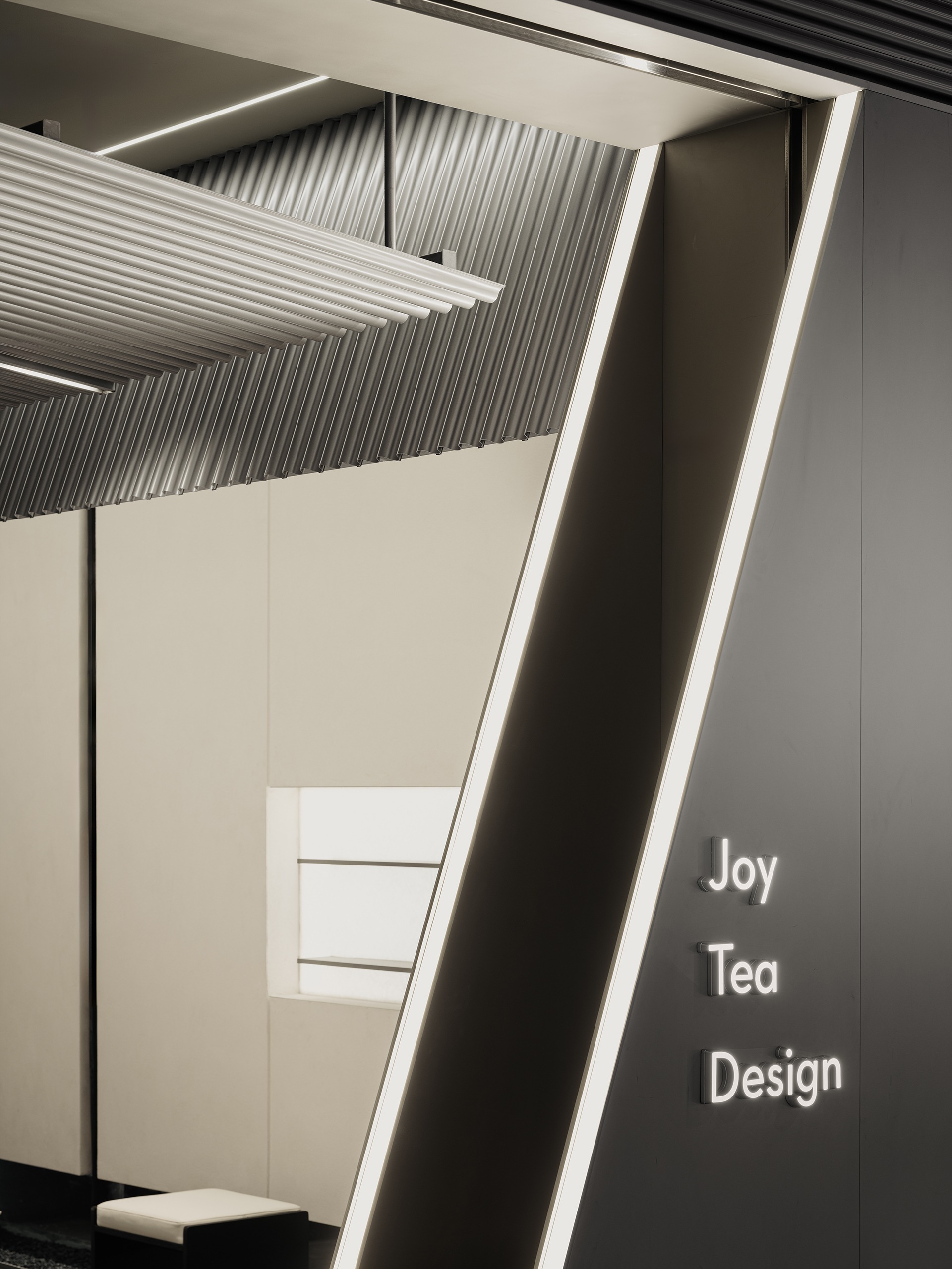 在设计中,我们将天花、墙体及座位设计成高度抽象的屋檐造型,以建筑化的方式构筑了一个属于喜茶的“重庆屋山”,让人既可以在“小窗坐地”中体验空间的舒适,又可感受到“上房揭瓦”的趣味。